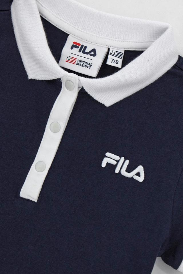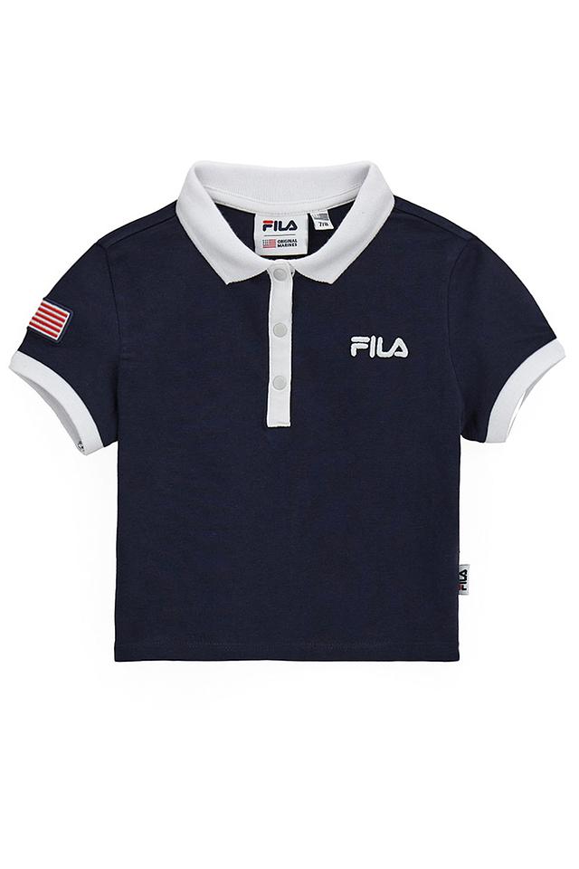 Синее поло от Original Marines для девочки, украшенное логотипом FILA и американским флагом. Изготовлено из мягкого хлопка с добавлением эластана для комфорта и свободы движений. Состав: хлопок 95%, эластан 5%