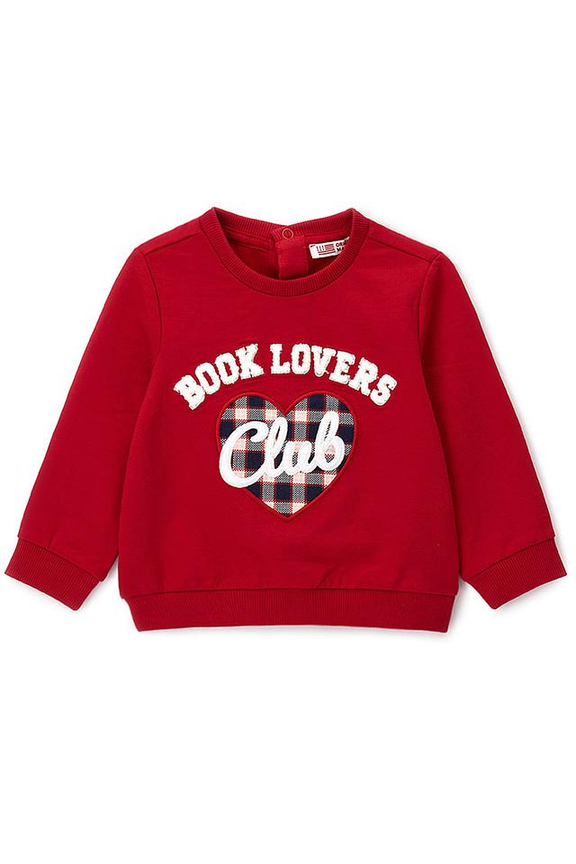 Джемпер Original Marines для девочки, красного цвета, с ярким принтом "Book Lovers Club". Удобный крой и мягкий хлопок обеспечат комфорт и свободу движений. Состав: хлопок 95%, эластан 5%