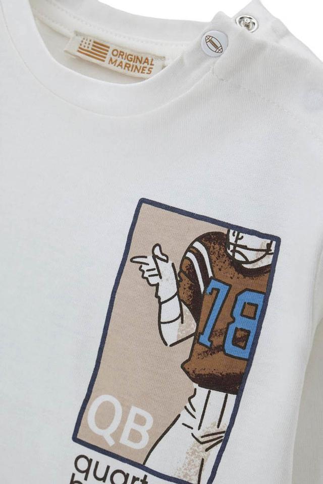 Белая футболка Original Marines для мальчика с ярким принтом в виде футболиста. Изготовлена из 100% хлопка, обеспечивая комфорт и удобство в носке. Отличный выбор для активных детей! Состав: хлопок 100%