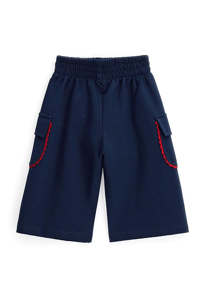 Синие джинсы-шорты от Original Marines – удобная и стильная одежда для девочки. Модель выполнена из мягкого хлопка с добавлением эластана, что обеспечивает комфорт при носке и свободу движений. Декоративные карманы с красной оборкой придают образу игривость. Состав: хлопок 96%, эластан 4%