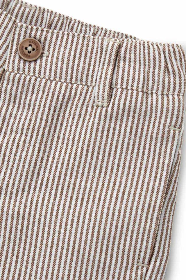 Детские брюки Original Marines бежевого цвета в полоску – удобная и стильная одежда для мальчиков. Модель выполнена из натурального хлопка с добавлением льна, что обеспечивает комфорт в жаркую погоду. Застежка на пуговицу и эластичный пояс гарантируют удобную посадку. Состав: хлопок 95%, лен 5%