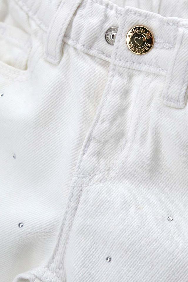 Белые джинсы Original Marines для девочки, украшенные блестками. Модель с эластичным поясом и удобным кроем идеально подойдёт для активных игр и повседневной носки. Изготовлены из 100% хлопка. Состав: хлопок 100%