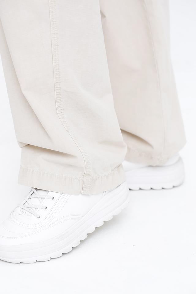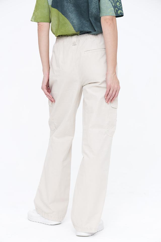 Брюки имеют свободный крой и широкие штанины, что обеспечивает свободу движений и создает расслабленный образ. Функциональные накладные карманы добавляют практичности и подчеркивают стиль карго. Эластичный пояс с регулирующим шнурком обеспечивает надежную посадку по фигуре.