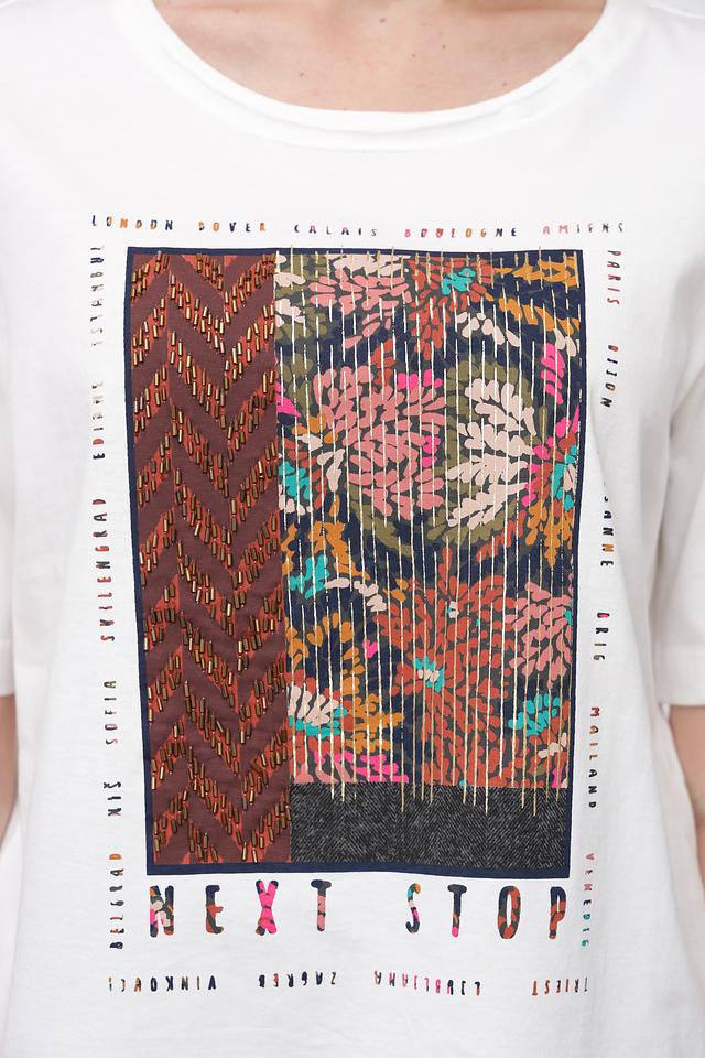 Белая футболка от Oui с ярким графичным принтом "NEXT STOP" на передней части. Изготовлена из 100% хлопка, обеспечивающего комфорт и воздухопроницаемость. Стильный и удобный вариант для повседневного образа. Состав: хлопок 100%
