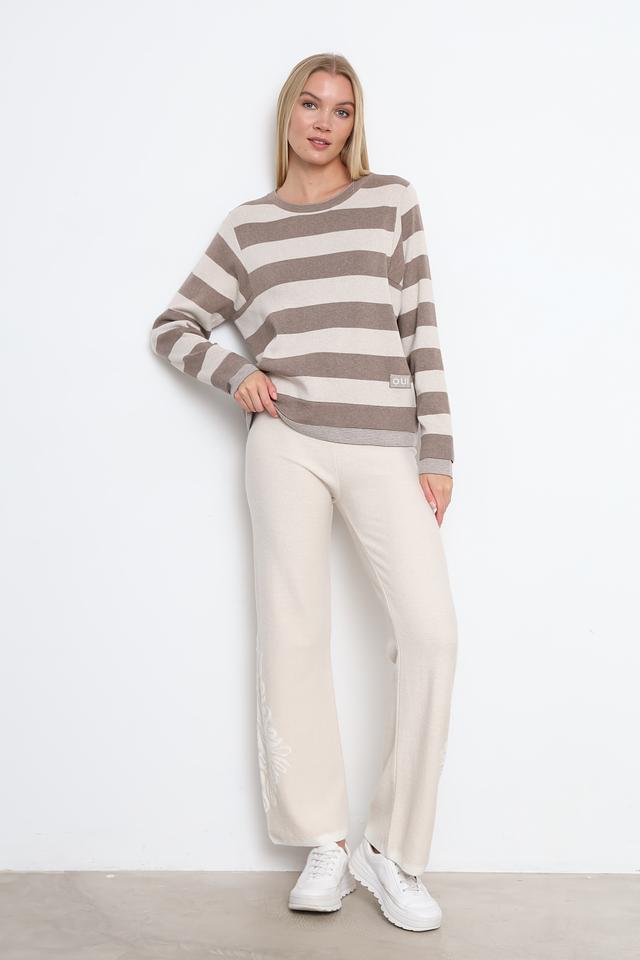 Пуловер Oui в полоску бежевый