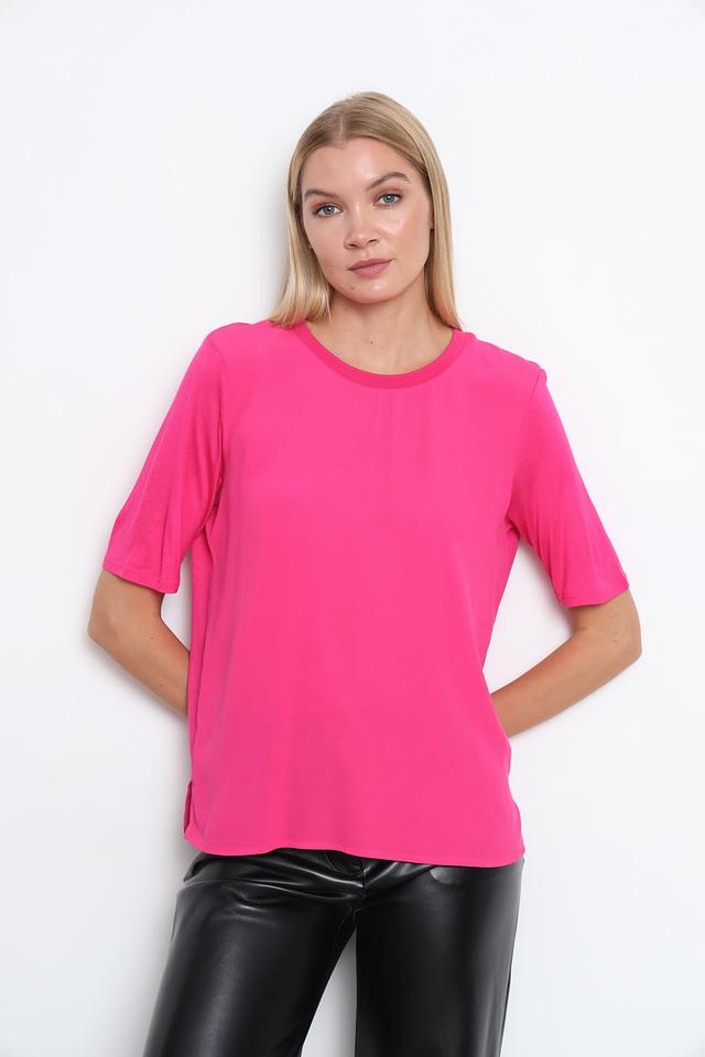 Блуза Oui фуксия – это стильная и удобная модель с коротким рукавом и круглым вырезом. Изготовлена из мягкой вискозы, обеспечивающей комфорт в носке. Идеально подходит для создания ярких и модных образов. Состав: вискоза 100%