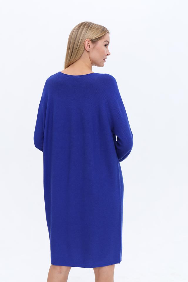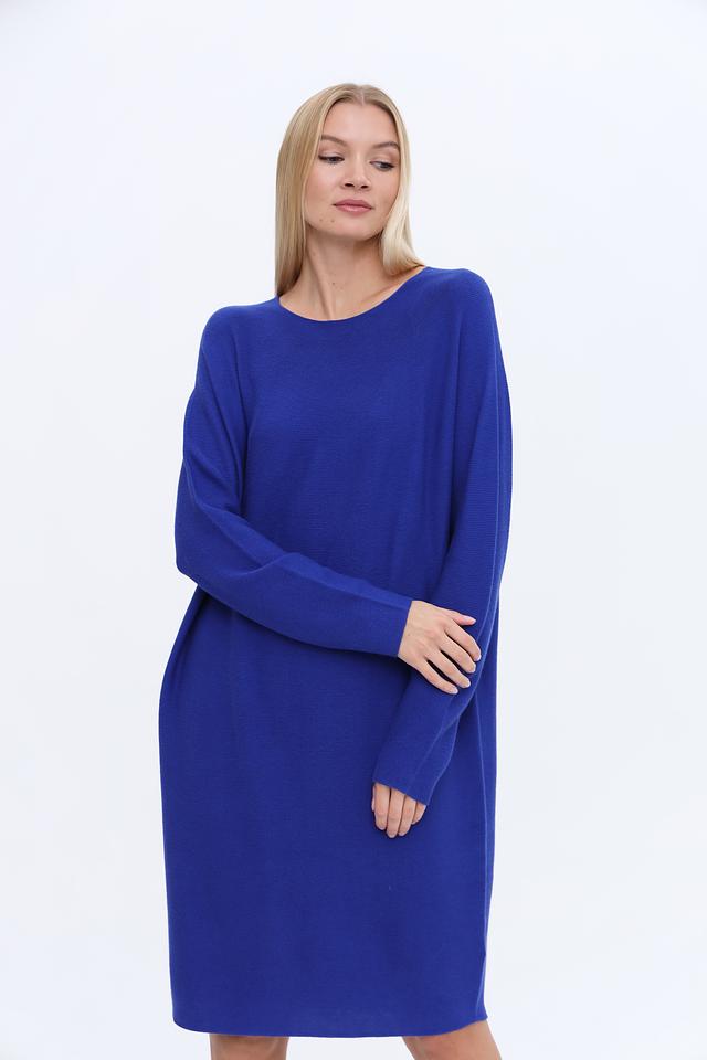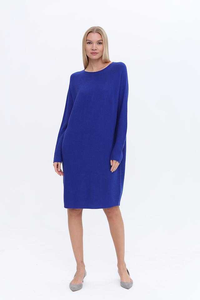 Платье имеет прямой, слегка зауженный к низу силуэт, который выгодно подчеркивает фигуру. Длинные рукава и круглый вырез горловины обеспечивают комфорт и свободу движений. Отсутствие декоративных элементов делает платье лаконичным и универсальным.