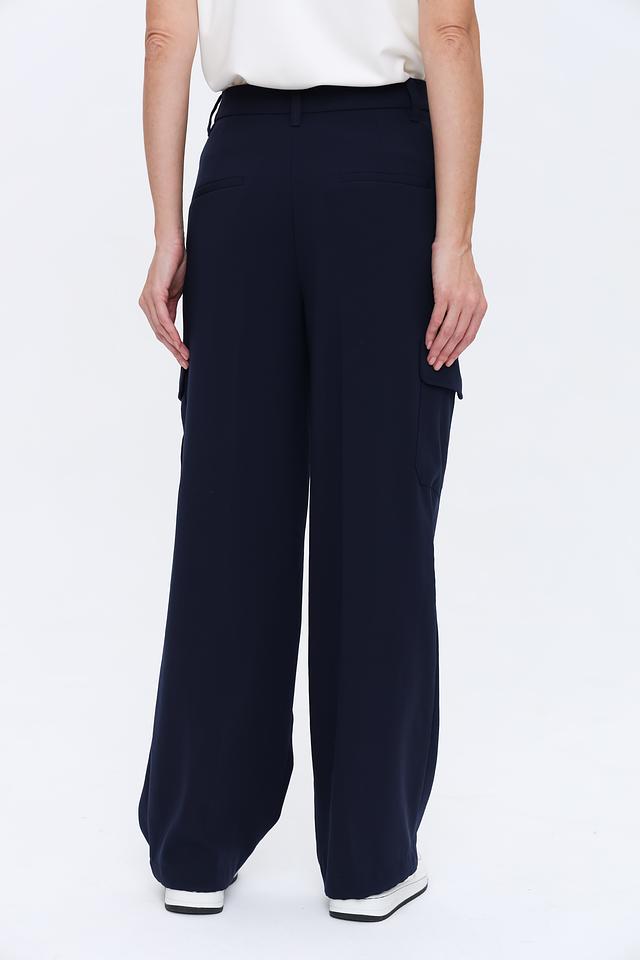 Тёмно-синие брюки палаццо от Oui из 100% полиэстера — элегантный выбор для создания стильного образа. Модель отличается широким кроем и удобной посадкой, а также наличием функциональных накладных карманов. Состав: полиэстер 100%
