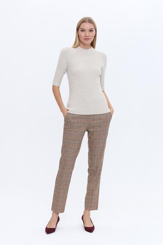 Модель имеет короткий рукав 3/4 и высокий воротник-стойку, что делает ее универсальной для различных случаев. Пуловер идеально подходит для ношения как самостоятельно, так и в качестве базового слоя под жакет или пальто.
