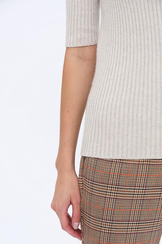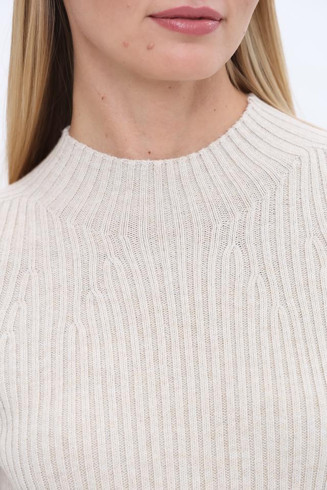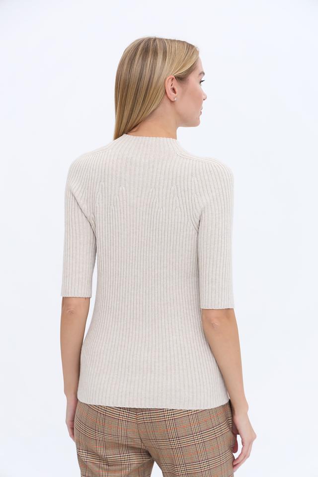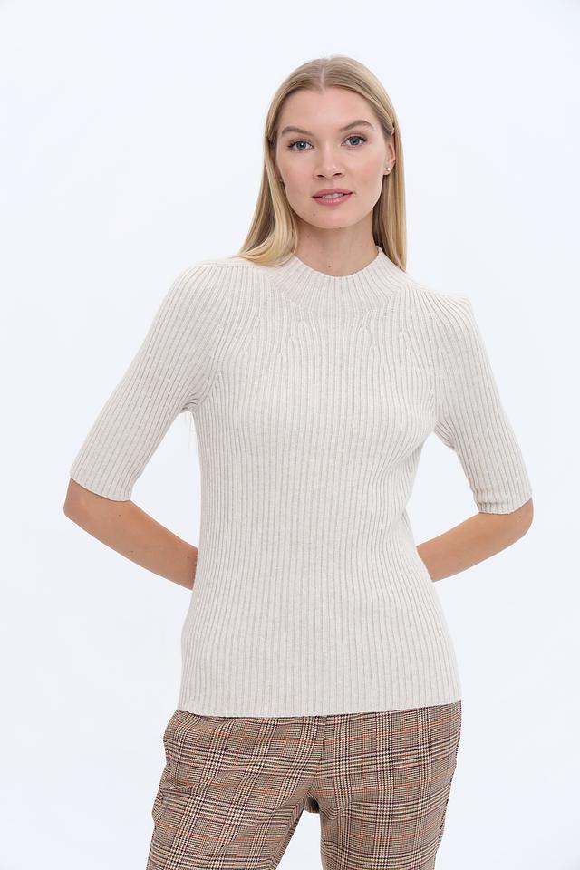 Бежевый пуловер от Oui с коротким рукавом и высоким воротом. Изготовлен из мягкого трикотажа в рубчик, который обеспечивает комфортную посадку и стильный вид. Идеально сочетается с брюками и юбками. Состав: полиамид 43%, хлопок 30%, вискоза 27%