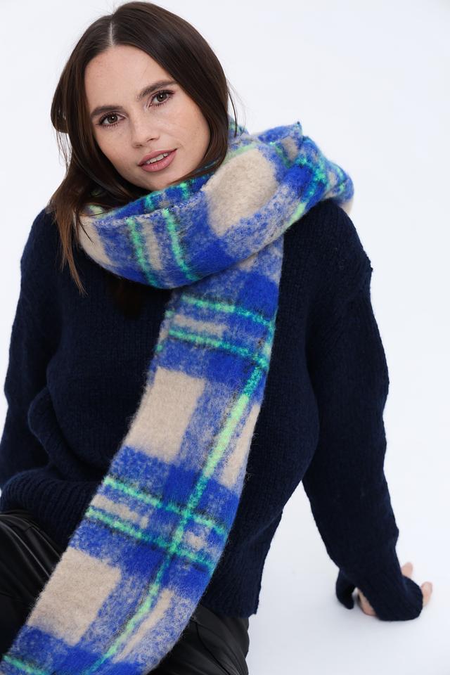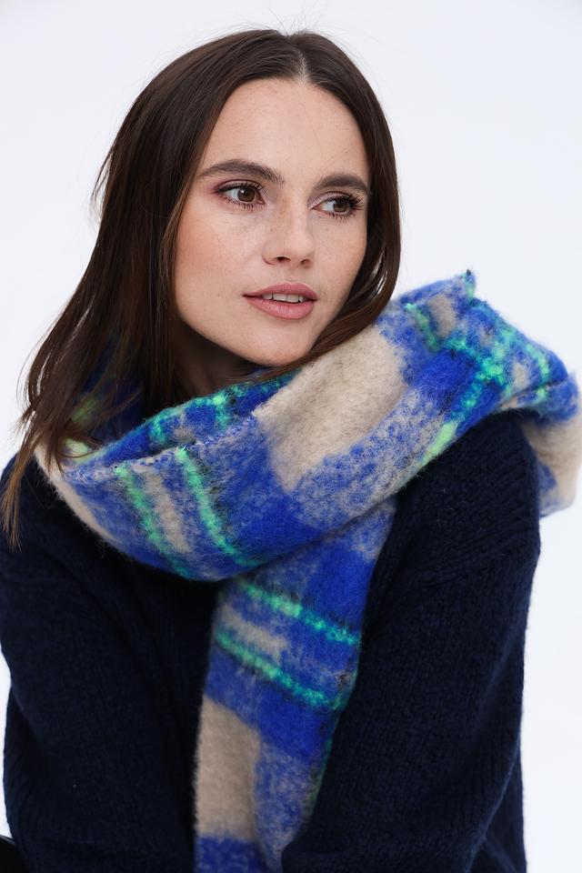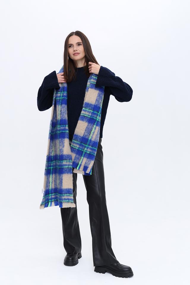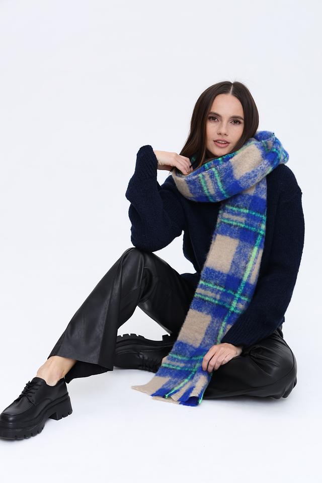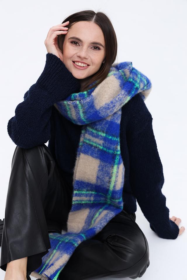 Этот шарф от бренда Oui станет прекрасным дополнением к вашему образу. Шарф выполнен в классической клетке, сочетающей в себе оттенки синего, бежевого и зелёного. Изделие имеет прямоугольную форму и достаточно большую длину, позволяющую носить его различными способами.