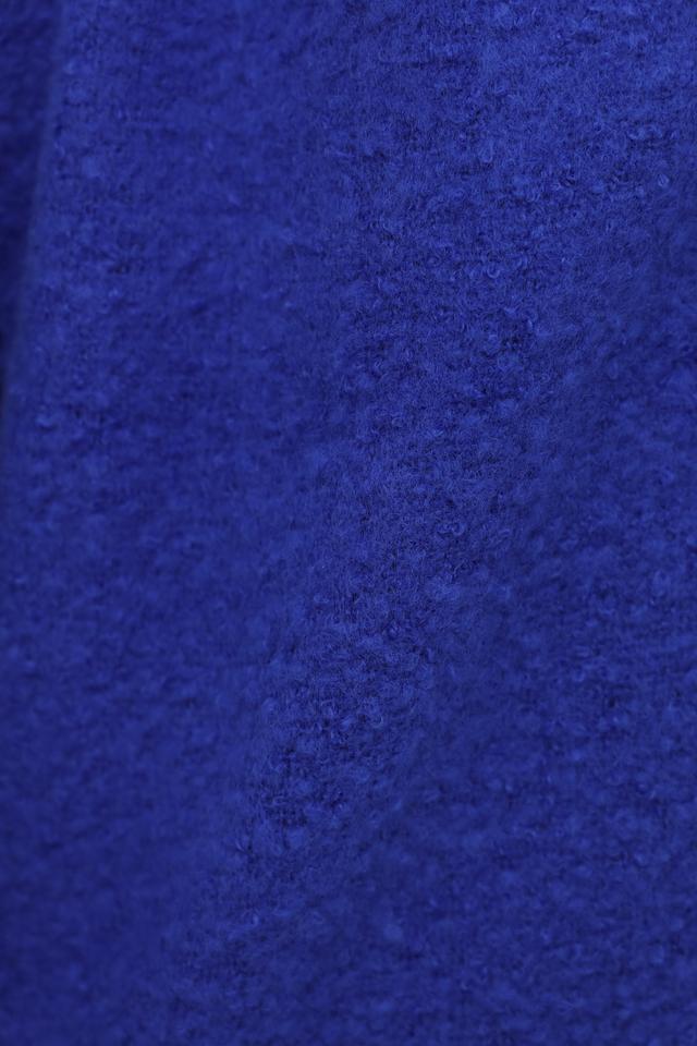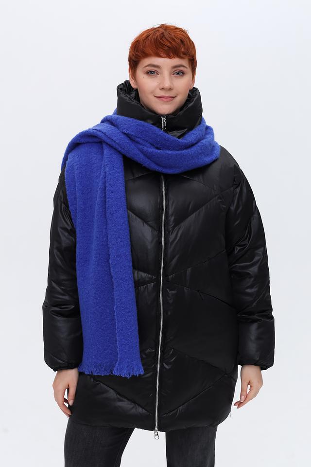 Шарф имеет насыщенный синий цвет и декорирован бахромой по краям, что придает ему оригинальный и стильный вид. Его длина позволяет носить его различными способами – как классический шарф, палантин или даже как накидку.