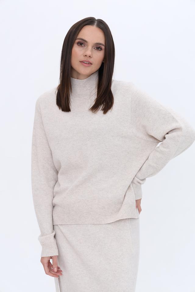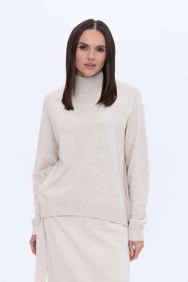 Пуловер Oui бежевый с горлом