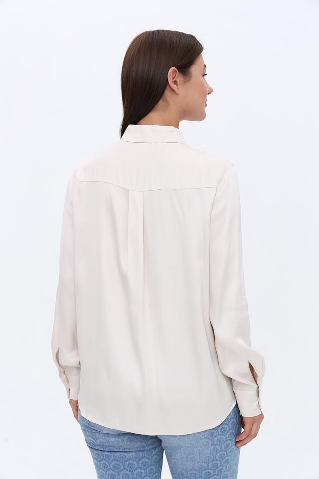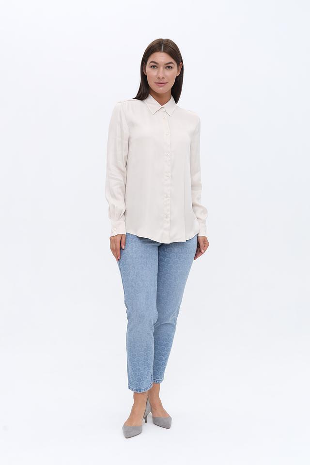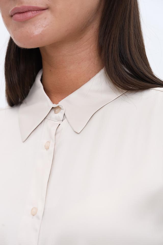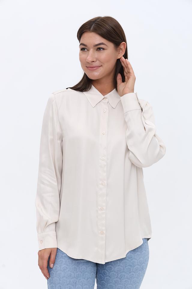 Цвет рубашки – нежный бежевый, который легко сочетается с различными элементами гардероба. Застежка на пуговицах по всей длине позволяет регулировать степень прилегания. Рубашка имеет аккуратную посадку по фигуре, не сковывая движений.