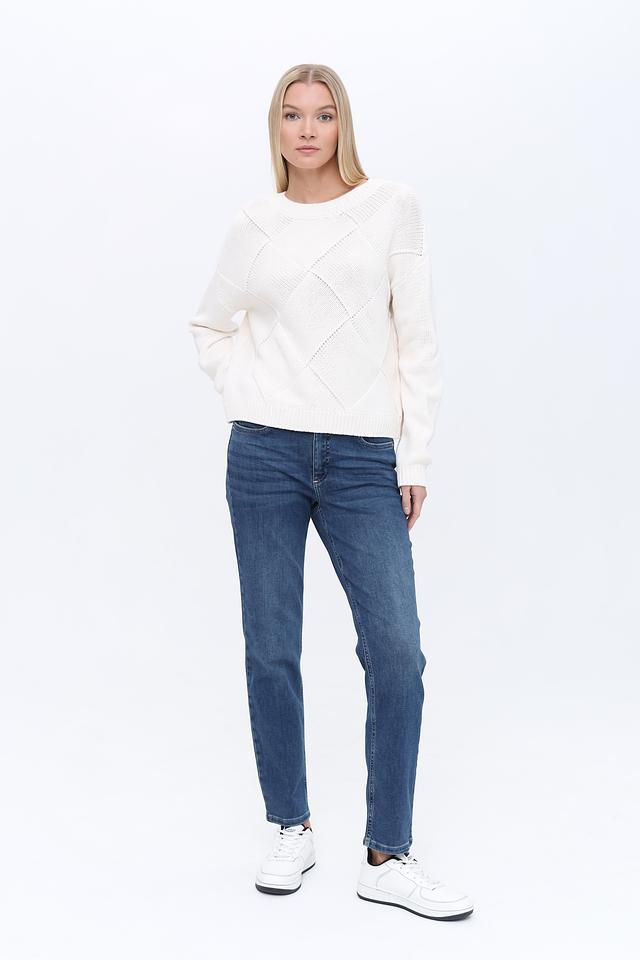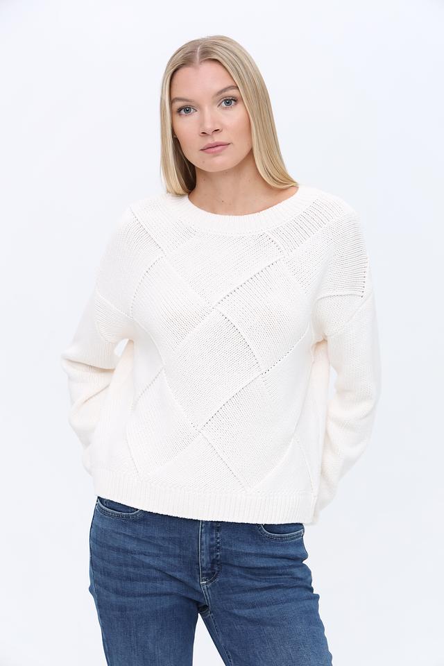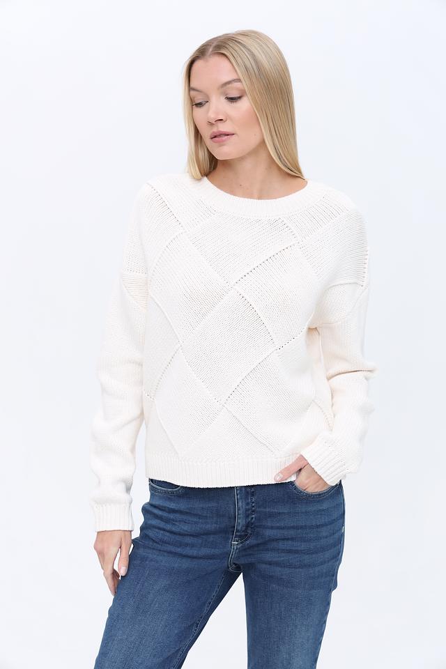 Кремовый пуловер от Oui с выразительным узором из кос. Изготовлен из мягкого хлопка с добавлением полиакрила для сохранения формы. Стильный и комфортный выбор для повседневного гардероба. Состав: хлопок 60%, полиакрил 40%