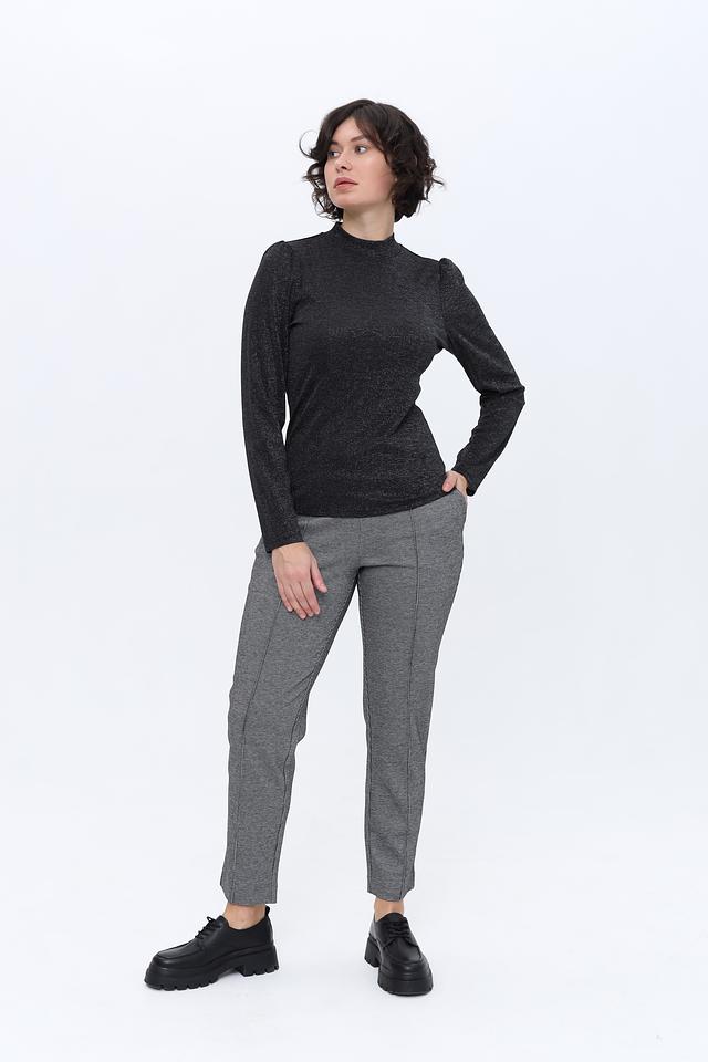 Состав ткани: 62% вискоза, 36% металлизированная нить, 2% эластан. Этот лонгслив идеально сочетается с брюками, юбками и джинсами, позволяя создавать разнообразные стильные образы.