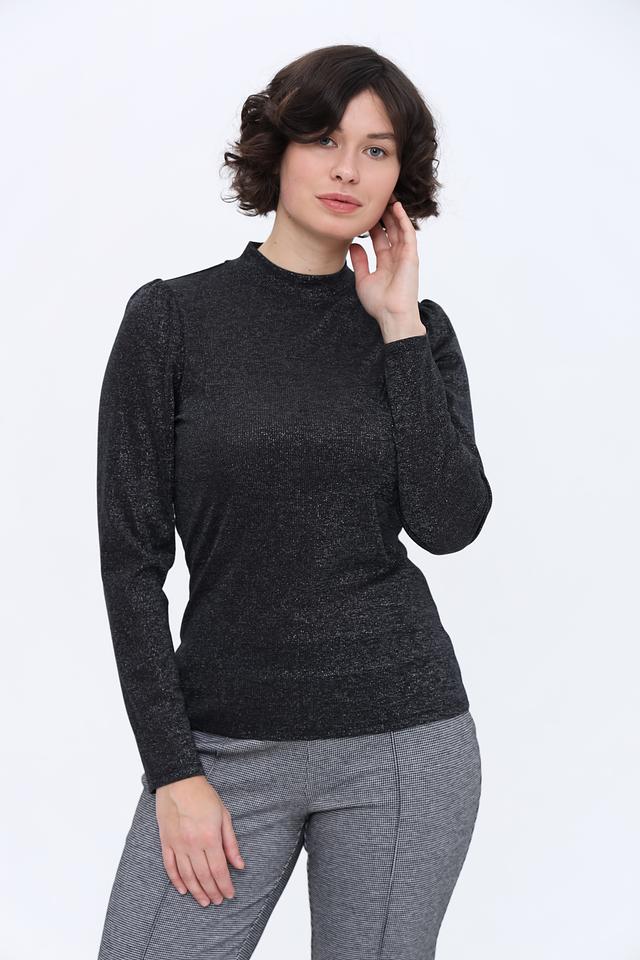 Черный лонгслив от Oui с добавлением металлизированной нити – стильное и комфортное решение для создания элегантного образа. Изготовлен из мягкой вискозы с эластаном, обеспечивающим удобную посадку по фигуре. Состав: вискоза 62%, метализ.нить 36%, эластан 2%