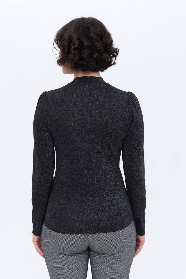 Этот лонгслив от Oui станет прекрасным дополнением к вашему гардеробу. Выполненный в черном цвете с добавлением металлизированной нити, он придает образу изысканность и блеск.