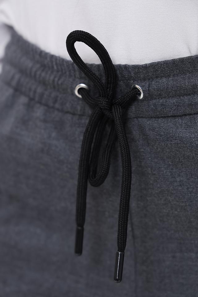 Брюки изготовлены из смеси полиэстера, вискозы и эластана, что обеспечивает им мягкость, комфорт и хорошую посадку. Эластичный пояс с кулиской позволяет регулировать облегание, а манжеты добавляют образу непринужденности.