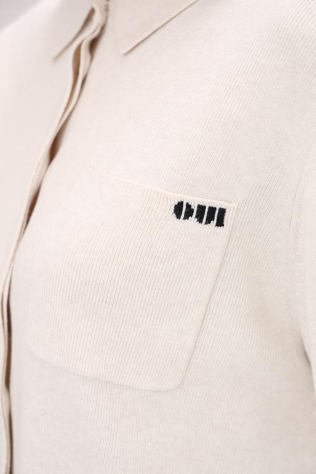 Жакет застегивается на пуговицы, имеет короткий рукав и классический отложной воротник. На груди расположен накладной карман с логотипом бренда.