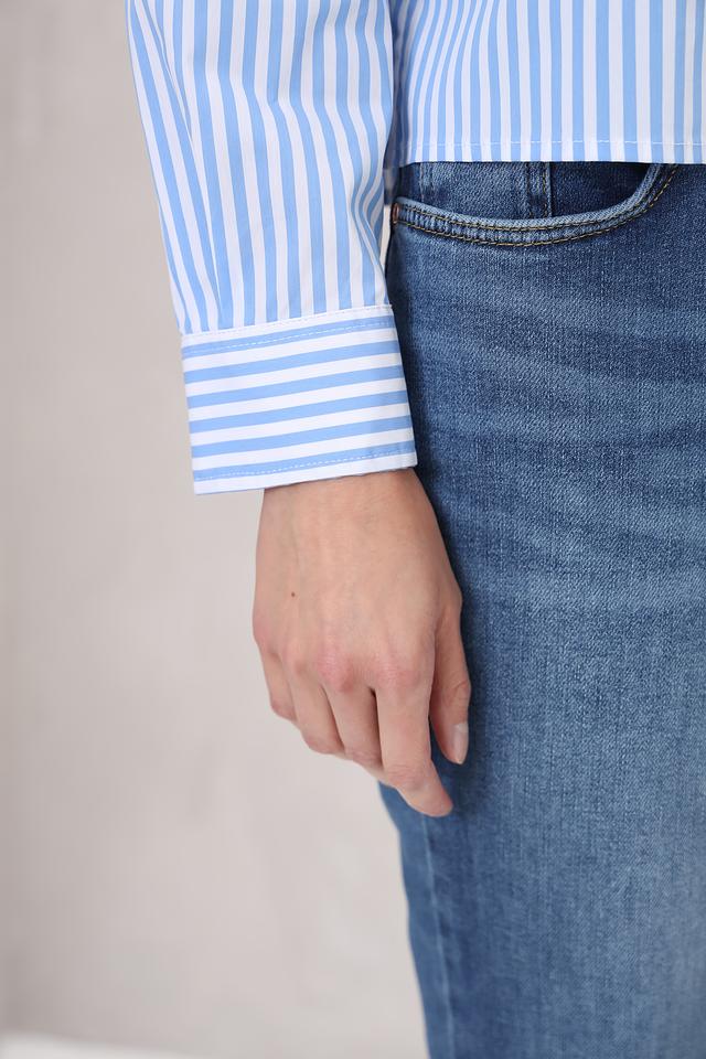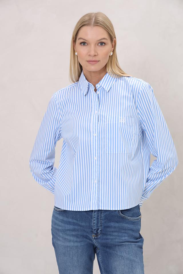 Эта рубашка от Oui – отличный выбор для тех, кто ценит комфорт и стиль. Выполнена в приятной голубой цветовой гамме с классическим полосатым принтом.