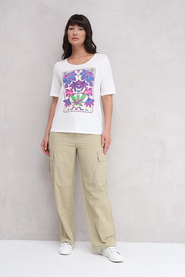 Белая футболка от Oui с ярким цветочным принтом – стильное и комфортное решение для повседневного образа. Изготовлена из мягкого хлопка с модалом, обеспечивающего приятные ощущения на коже. Состав: хлопок 50%, модал 50%