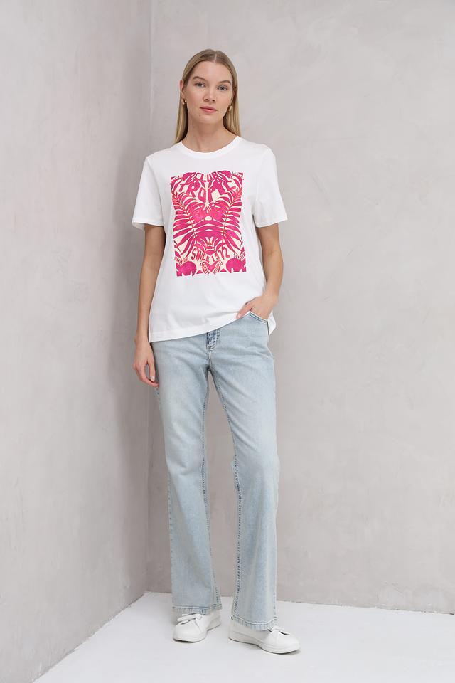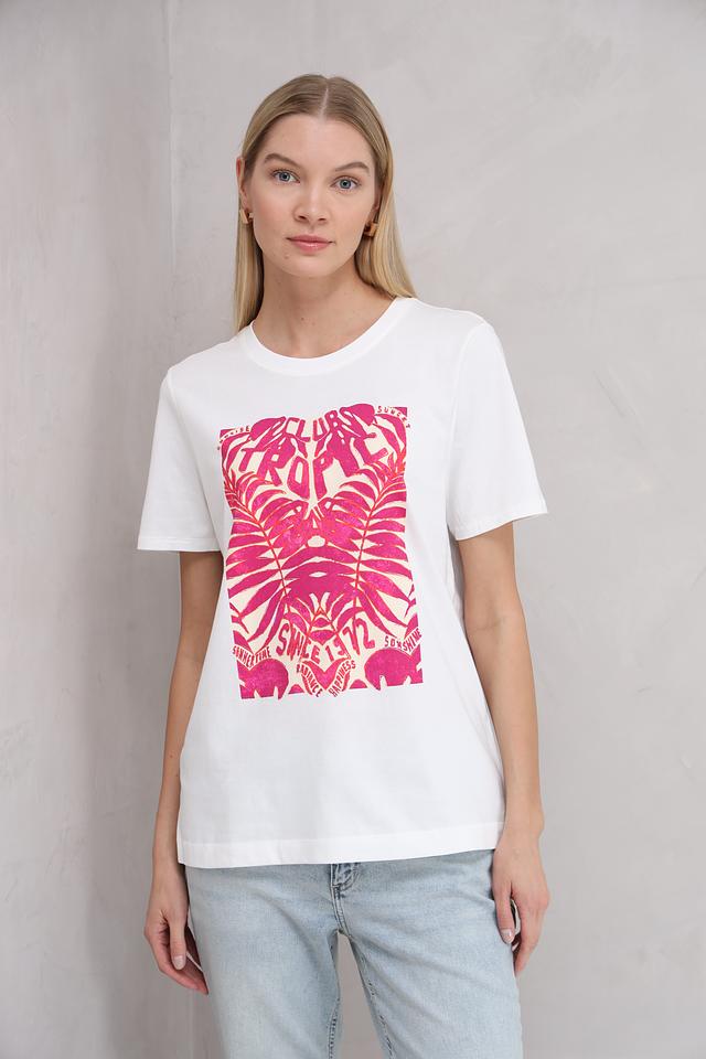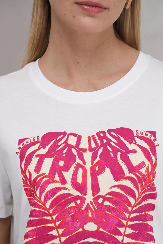 Белая футболка Oui с ярким розовым тропическим принтом станет отличным дополнением к вашему летнему гардеробу. Изготовлена из 100% хлопка, обеспечивая комфорт и воздухопроницаемость. Состав: хлопок 100%