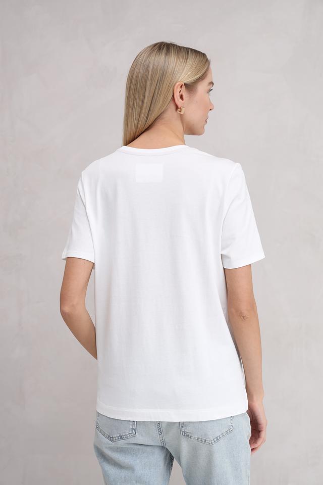 Круглый вырез горловины и прямой крой обеспечивают удобную посадку по фигуре. Футболка идеально подходит для создания повседневных образов в стиле casual.