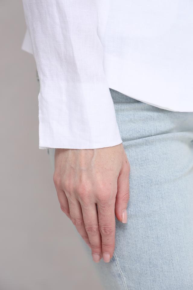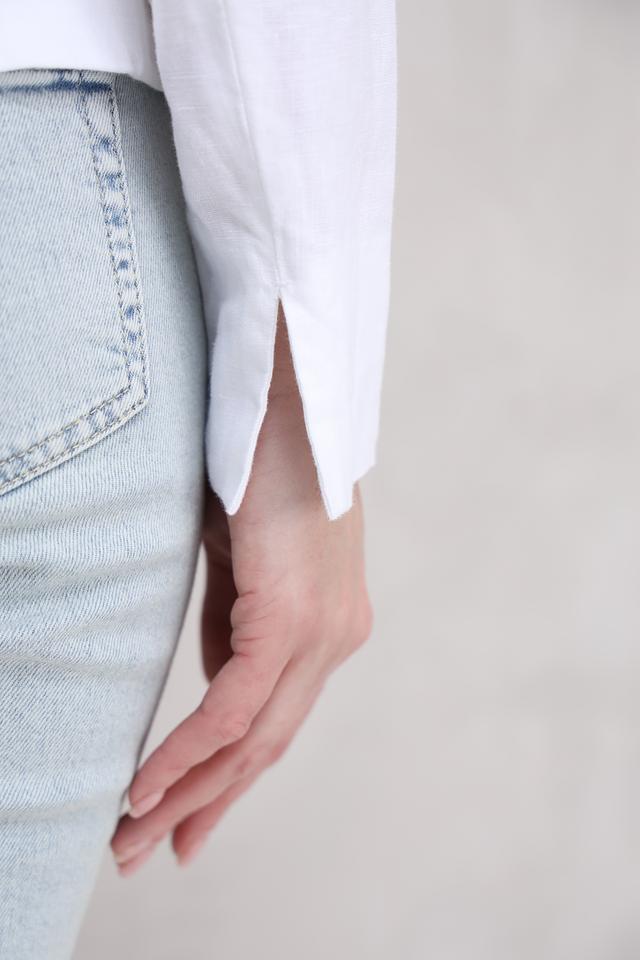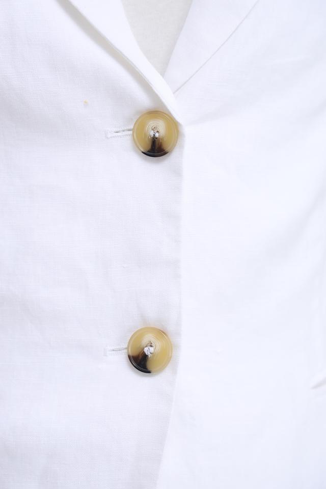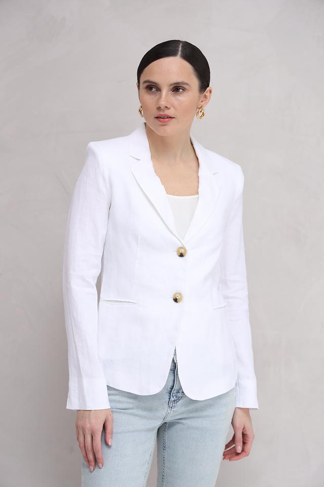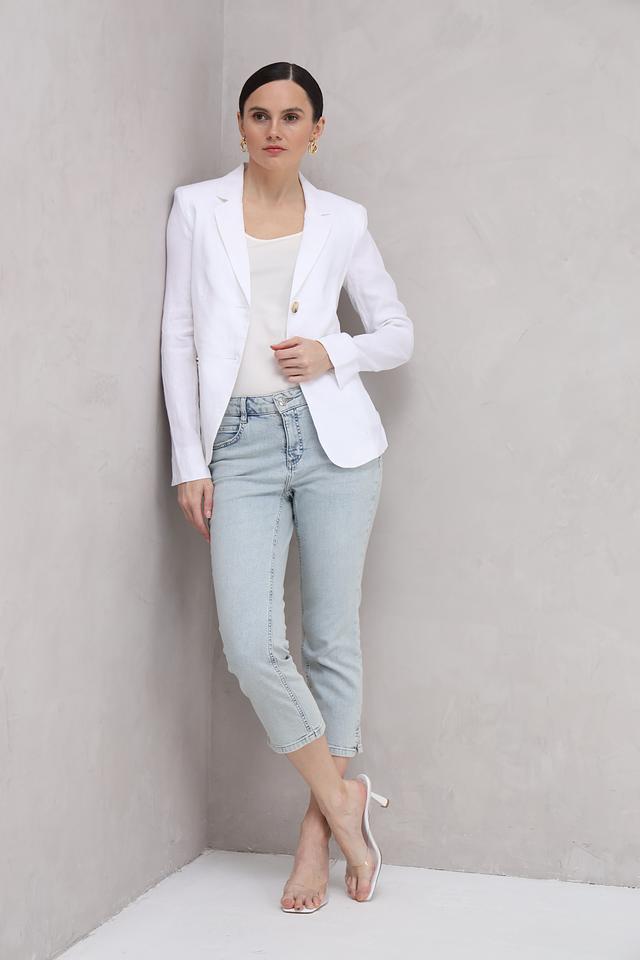 Этот жакет станет отличным выбором для создания как делового, так и повседневного образа. Он прекрасно сочетается с брюками, юбками и джинсами. Состав: 100% лен.