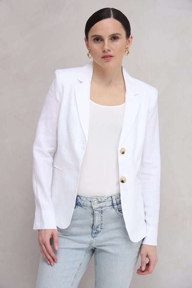 Белый жакет Oui из 100% льна – стильное и комфортное решение для создания элегантного образа. Прямой крой и классический дизайн делают этот жакет универсальным дополнением к любому гардеробу. Состав: лен 100%