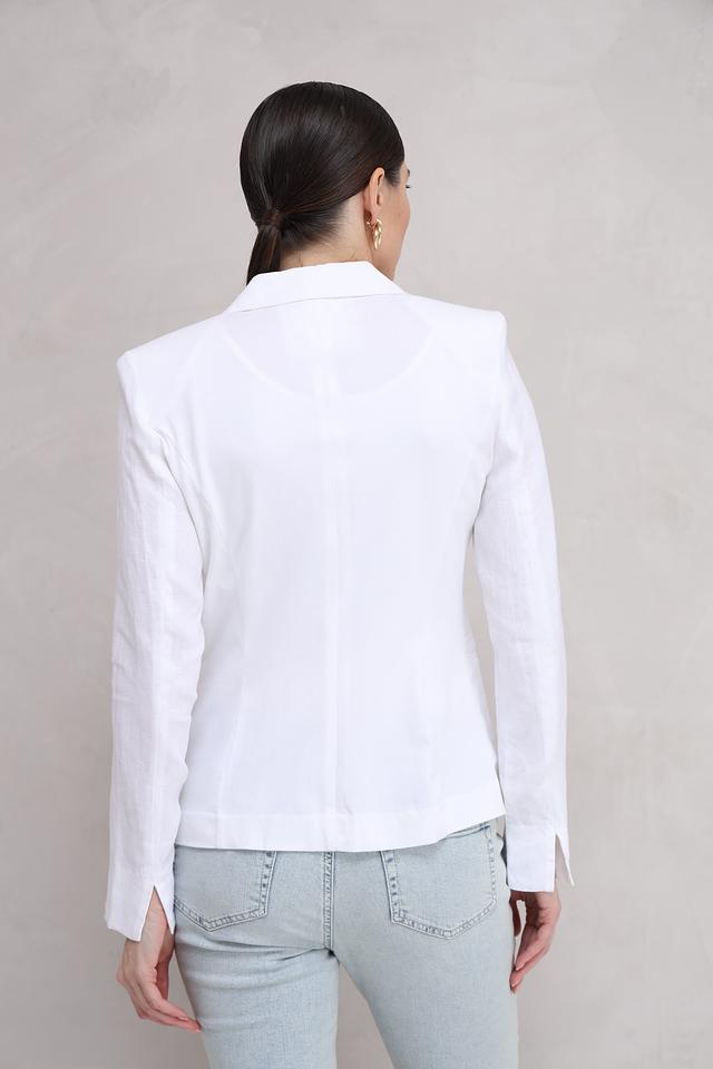 Этот жакет от Oui выполнен из высококачественного льна, что обеспечивает комфорт и воздухопроницаемость в теплую погоду. Белый цвет придает жакету свежесть и универсальность, позволяя легко сочетать его с различными элементами гардероба.