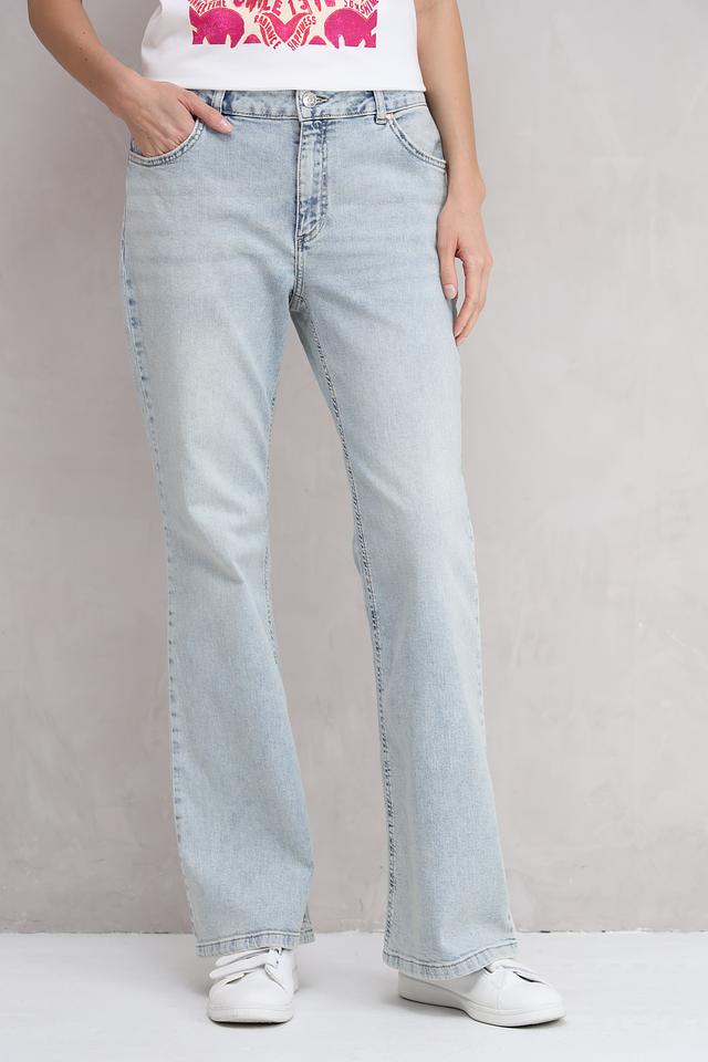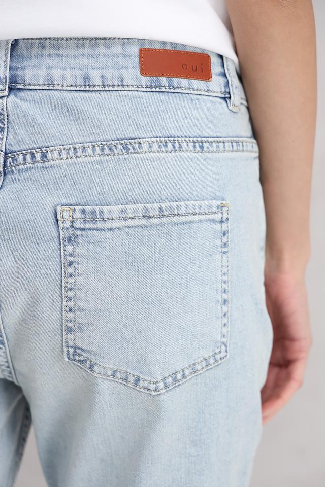 Светло-голубые джинсы Oui прямого кроя станут отличным дополнением к вашему гардеробу. Модель выполнена из качественного хлопка с добавлением эластана для комфорта и свободы движений. Классический пояс с пуговицей. Состав: хлопок 98%, эластан 2%