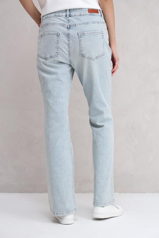Классический прямой крой обеспечивает комфортную посадку по фигуре, а добавление эластана в состав ткани делает джинсы более эластичными и приятными к телу.