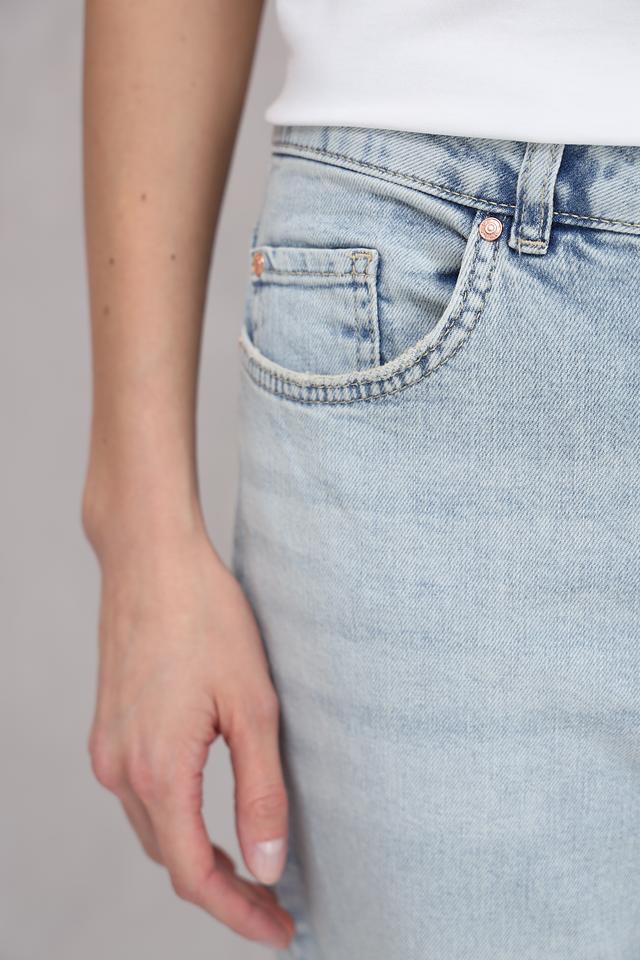 Джинсы имеют стандартную высоту пояса и застежку на пуговицу. Пять карманов – два спереди, два сзади и один небольшой карман для мелочи.