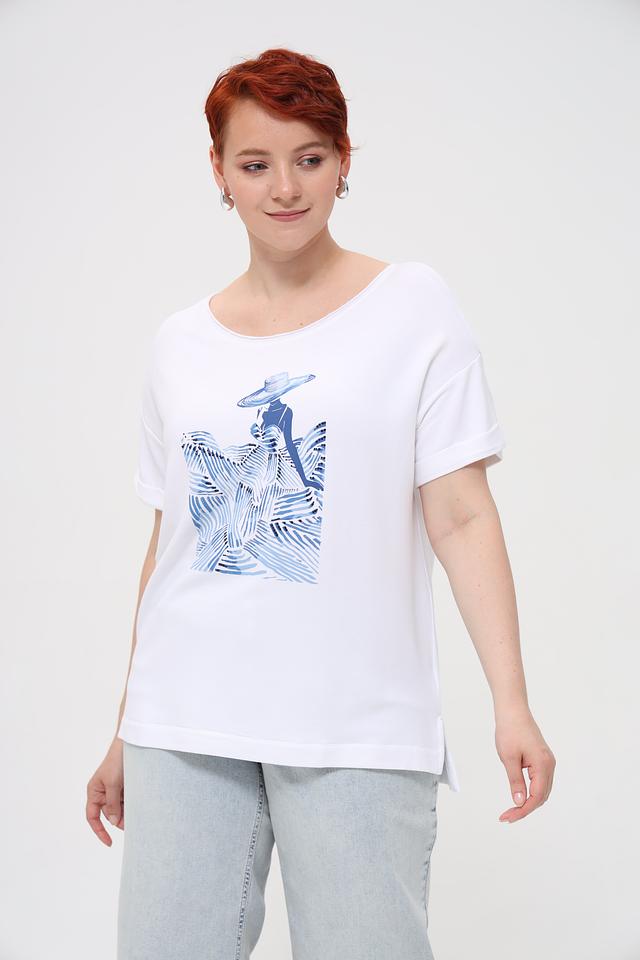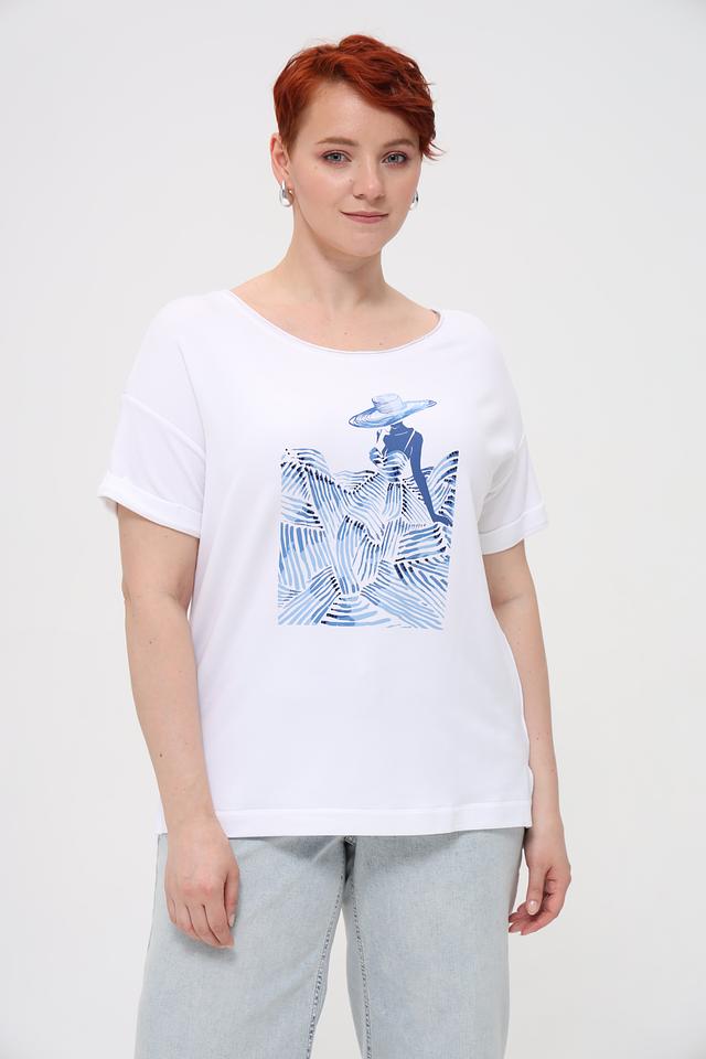 Белая футболка Oui с оригинальным принтом в стиле арт-деко. Модель свободного кроя из мягкого модала с добавлением хлопка и эластана, обеспечивающего комфорт при носке. Состав: модал 70%, хлопок 25%, эластан 5%