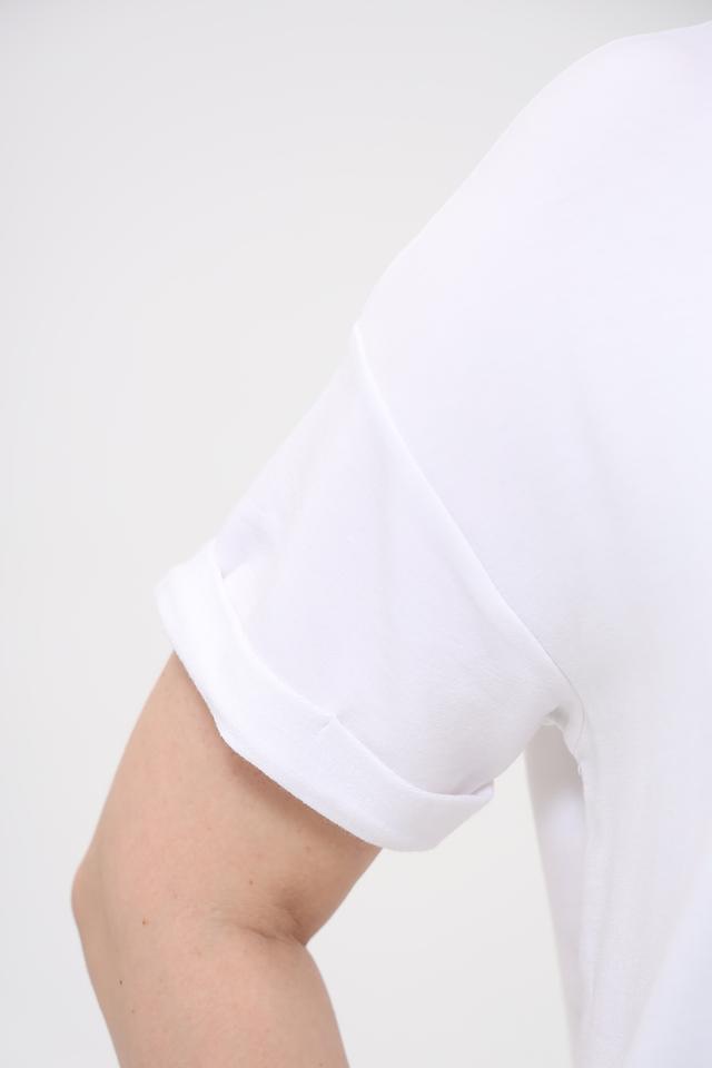 Модель имеет свободный крой, который обеспечивает комфорт и свободу движений. Короткие рукава и округлый вырез горловины делают футболку универсальной и подходящей для различных образов.