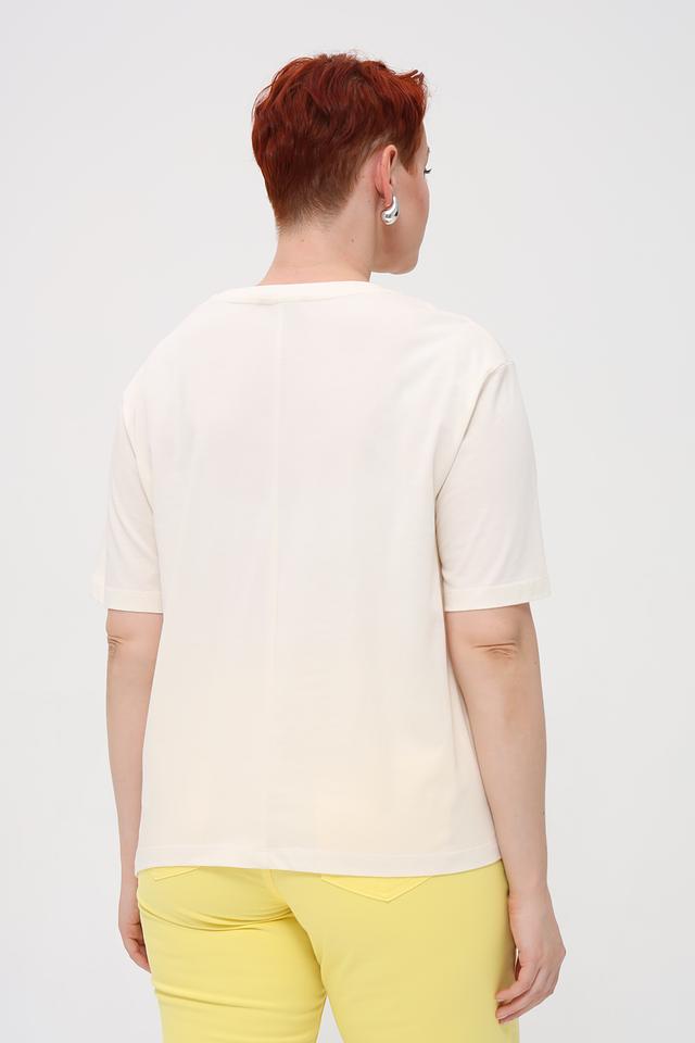 Блуза имеет свободный крой, короткие рукава и круглый вырез горловины. Она изготовлена из высококачественного 100% хлопка, что обеспечивает комфорт в носке и приятные ощущения на коже.