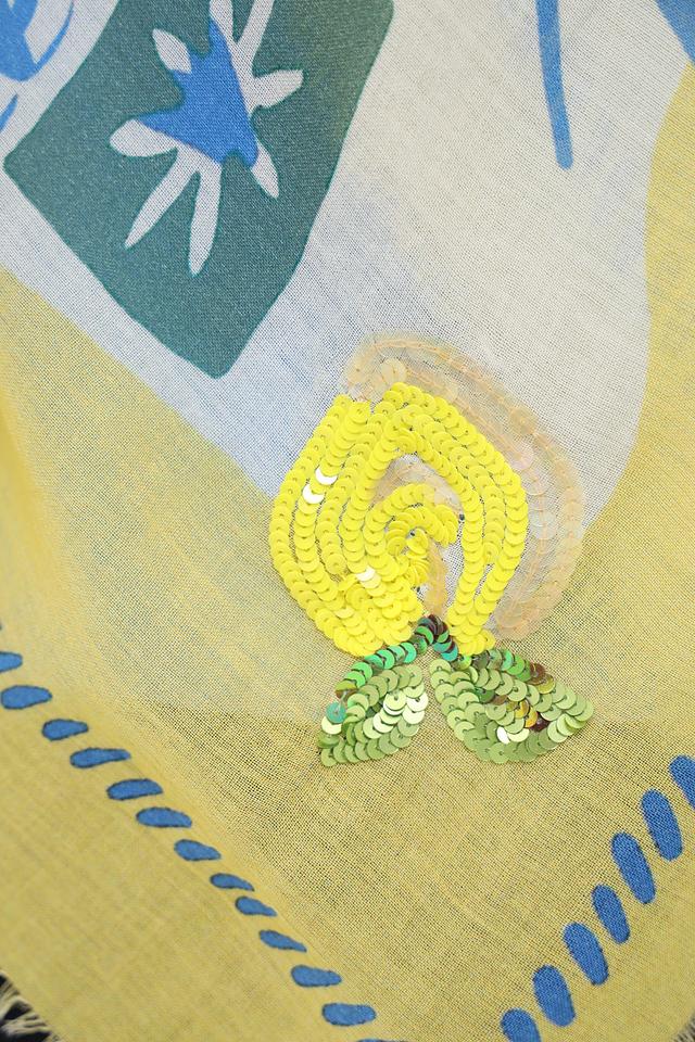 Жёлтый платок от Oui с ярким принтом и аппликацией из пайеток станет стильным дополнением к вашему образу. Изготовлен из мягкого хлопка с модалом, обеспечивающего комфорт и приятные ощущения. Состав: хлопок 50%, модал 50%