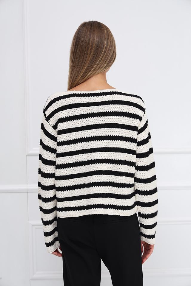 Этот стильный пуловер от бренда Oui станет прекрасным дополнением к вашему гардеробу. Пуловер выполнен в классической полосатой расцветке – сочетание белого и черного цветов делает его универсальным и легко сочетаемым с другими вещами.