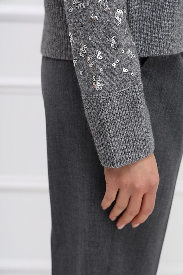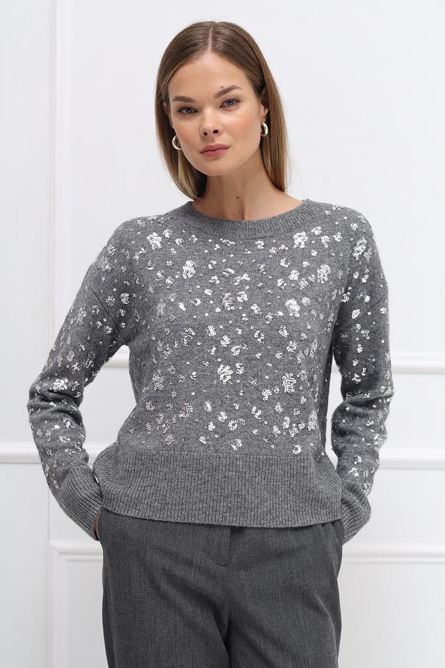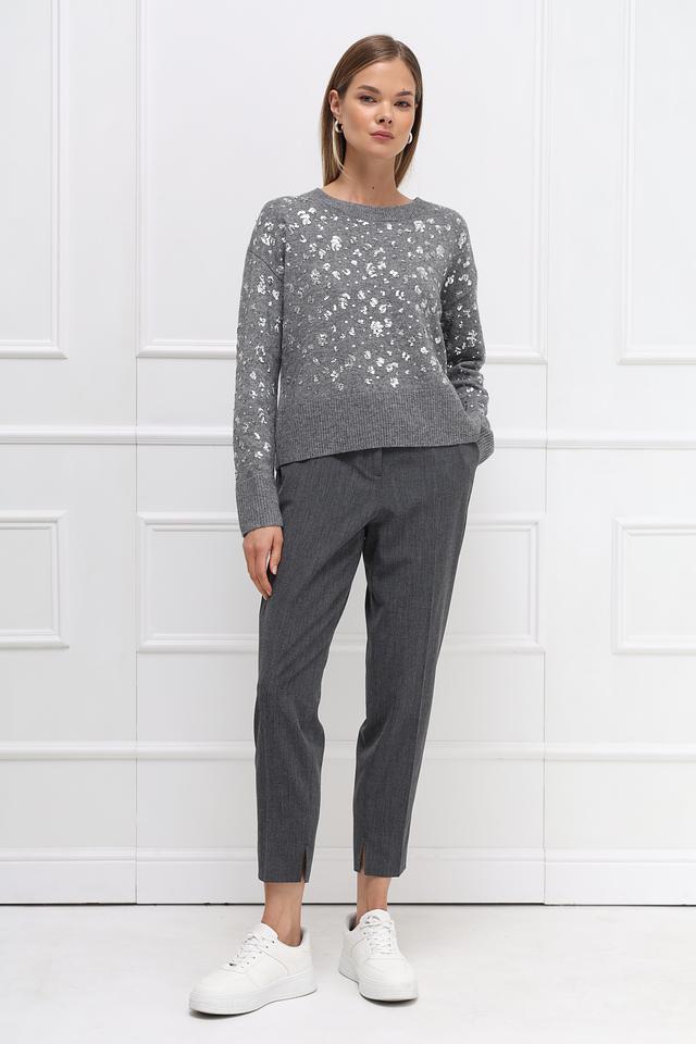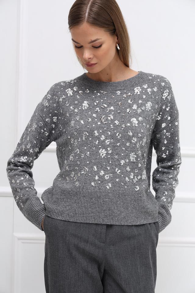 Серый пуловер Oui, украшенный пайетками, выполнен из мягкой смеси шерсти, полиамида и модала. Идеальный выбор для создания праздничного образа. Состав: шерсть 50%, полиамид 30%, модал 20%