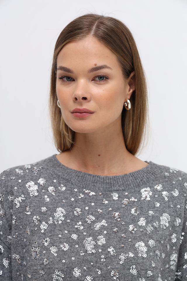 Пуловер Oui с пайетками серый