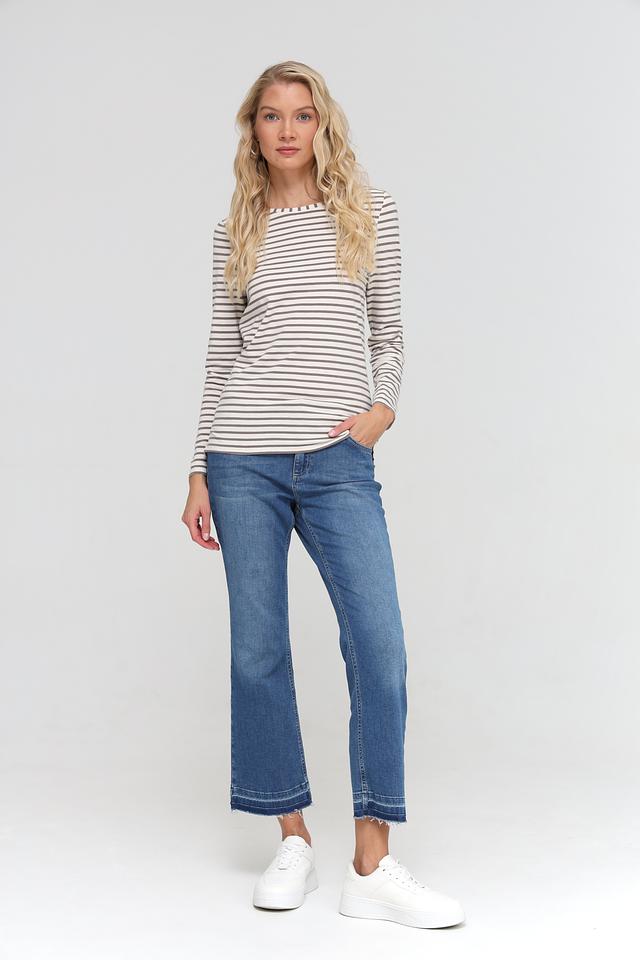 Эта стильная футболка от бренда Oui станет незаменимой частью вашего гардероба. Модель выполнена в классическом полосатом дизайне, сочетающем в себе оттенки серого и белого.