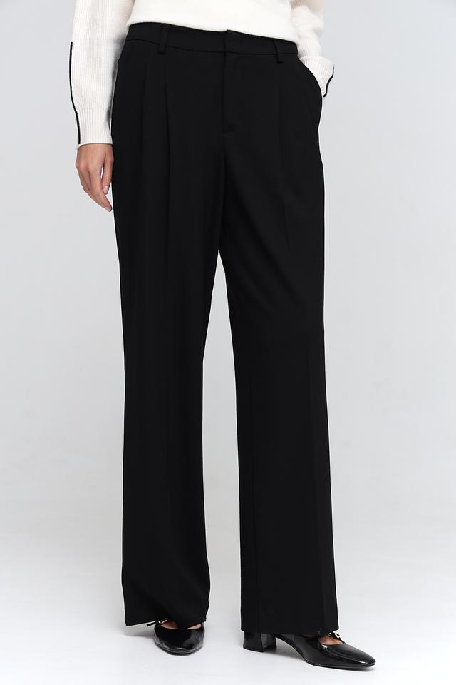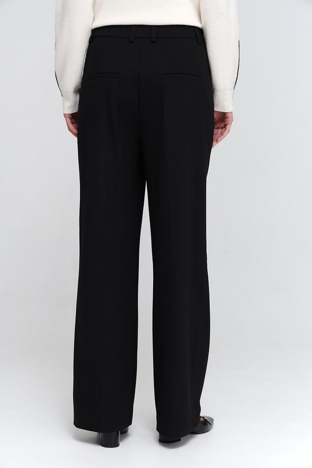 Брюки имеют прямой крой, который обеспечивает комфортную посадку и свободу движений. Заутюженные стрелки придают им строгий и лаконичный вид. Боковые карманы добавляют функциональности и практичности.
