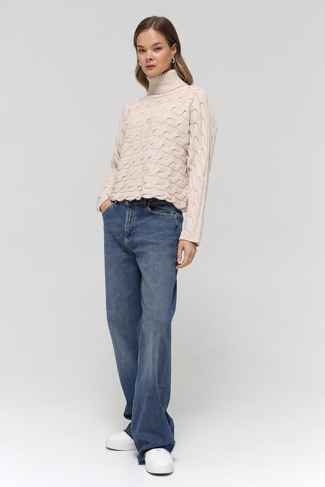Бежевый пуловер от Oui с высоким горлом и выразительным узором из кос. Изготовлен из мягкого хлопка с добавлением полиакрила для сохранения формы. Идеальный выбор для создания уютного и стильного образа. Состав: хлопок 60%, полиакрил 40%