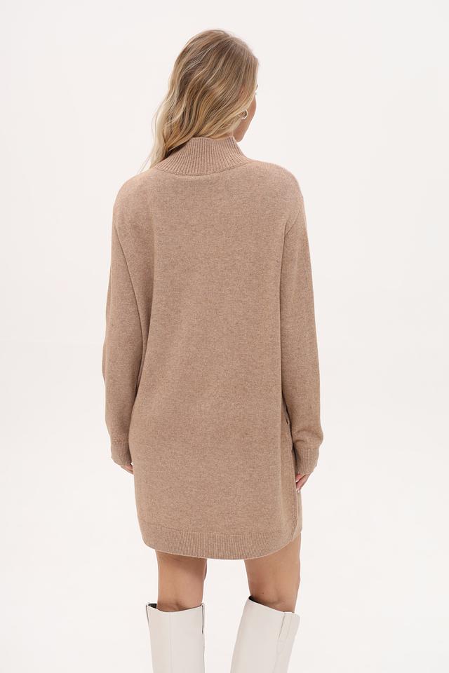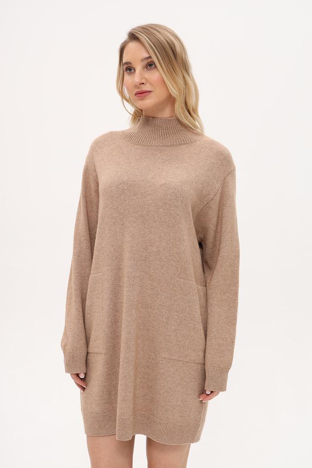 Бежевое платье от Oui выполнено из мягкого вязаного полотна с высоким горлом. Уютный силуэт и боковые карманы делают его идеальным выбором для повседневной носки. Состав включает шерсть, полиамид и модал. Состав: шерсть 50%, полиамид 30%, модал 20%