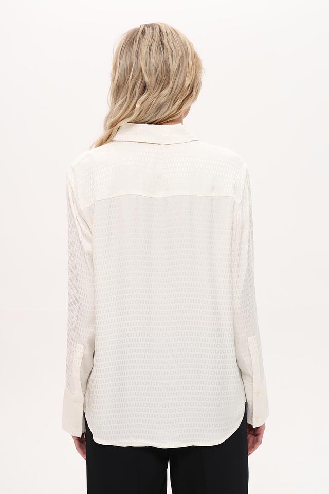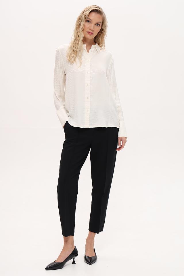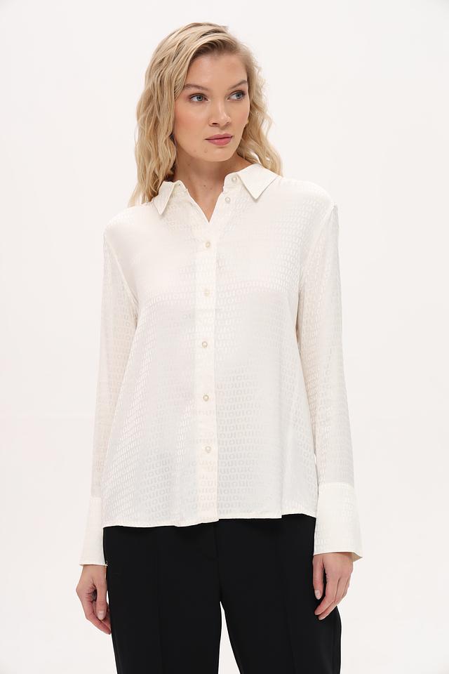 Белая рубашка Oui из 100% вискозы с лёгким принтом. Классический крой и длинный рукав делают эту модель универсальной для создания различных образов. Состав: вискоза 100%
