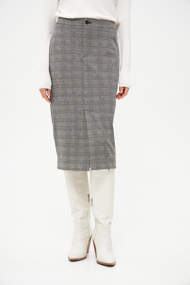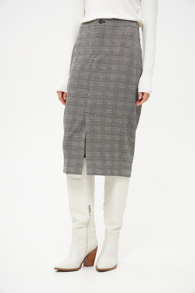 Юбка Oui миди в классическую клетку – элегантный выбор для создания стильного образа. Модель выполнена из плотной ткани с добавлением вискозы и эластана, что обеспечивает комфорт и хорошую посадку по фигуре. Имеет небольшой разрез сзади. Состав: полиэстер 69%, вискоза 28%, эластан 3%