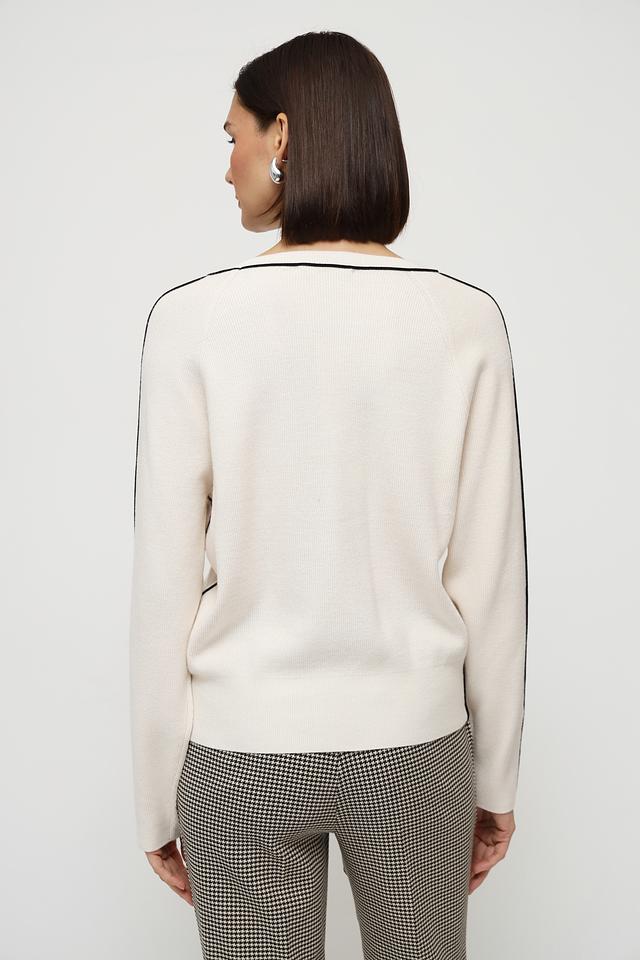 Бежевый пуловер от Oui с контрастной чёрной полоской на горловине и рукавах. Изготовлен из мягкого трикотажа, обеспечивающего комфорт и удобство в носке. Состав: вискоза 52%, полиэстер 30%, полиамид 18%