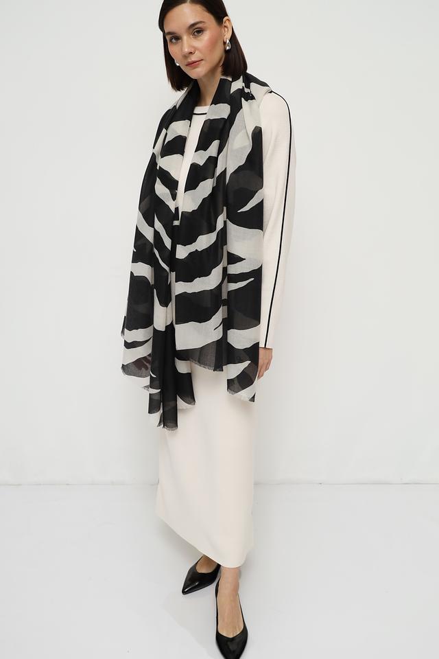 Этот элегантный шарф от Oui станет ярким акцентом в вашем гардеробе. Шарф выполнен в классической прямоугольной форме и украшен эффектным черно-белым принтом, имитирующим шкуру зебры.