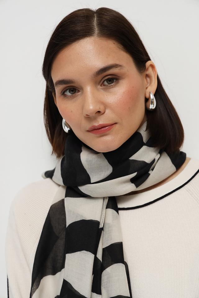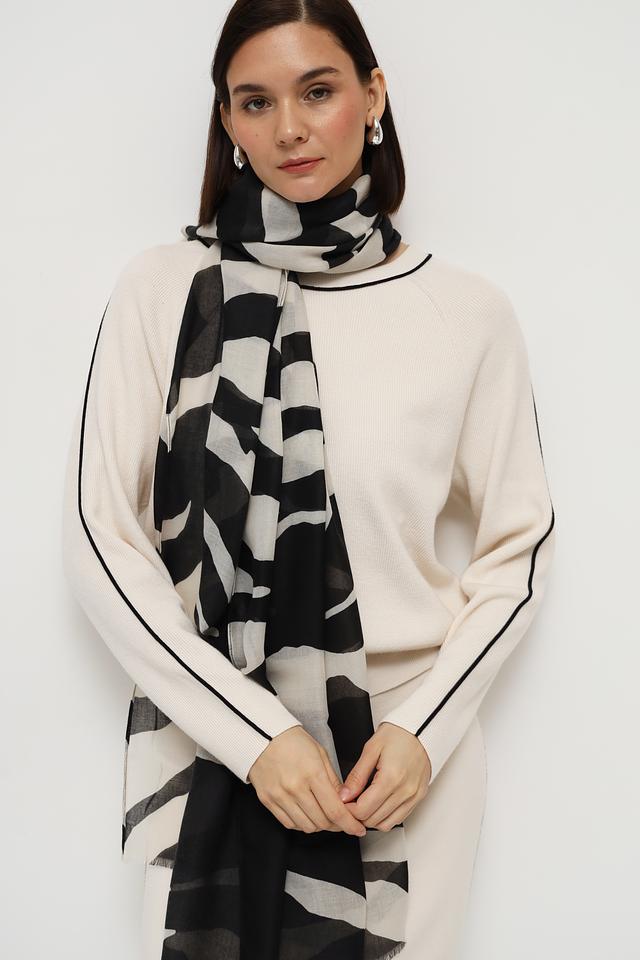 Шарф от бренда Oui чёрно-белого цвета с оригинальным принтом "зебра" станет стильным дополнением к вашему образу. Изготовлен из мягкого полиэстера, приятного на ощупь. Состав: полиэстер 100%